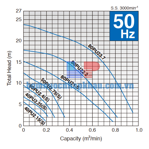 Biểu đồ lưu lượng máy bơm chìm nước thải cánh xoáy Tsurumi