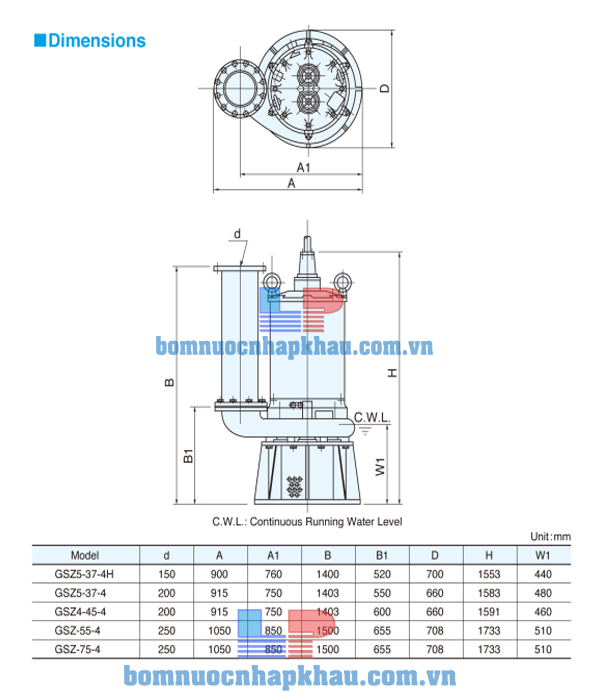 BƠM CHÌM NƯỚC THẢI - XÂY DỰNG TSURUMI GSZ4-45-4 (45KW)